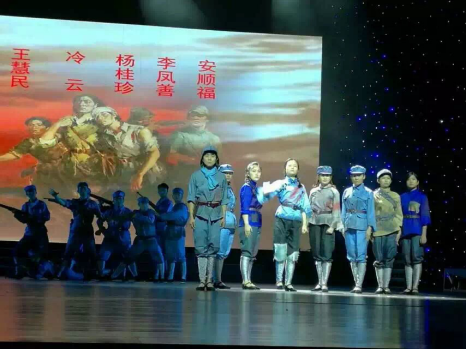 在《红旗颂》辽阔悠远的旋律中,以《光辉的历程》为主题的晚会演出精彩纷呈,现场不时响起观众热烈的掌声。最后,文艺晚会在全体齐唱《没有共产党就没有新中国》嘹亮的歌声中落下帷幕。