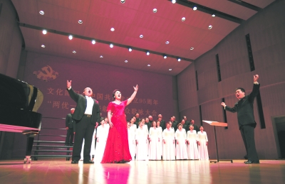 歌咏大会上,文化部系统干部职工合唱《在灿烂阳光下》。中国文化报记者卢旭 摄