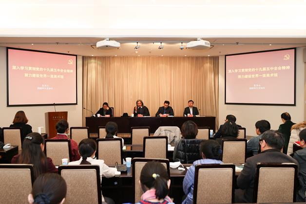11月24日,中国美术馆召开了"深入学习贯彻党的十九届五中全会精神 努力建设世界一流美术馆"全馆大会。会上,中国美术馆馆长吴为山及部分职工代表做了发言,吴为山指出:“学习好、宣传好、贯彻好党的十九届五中全会精神,是当前和今后一个时期我馆的重大政治任务,也是一项长期的战略任务。要切实把思想和行动统一到习近平总书记重要讲话精神和党中央决策部署上来,坚定不移贯彻新发展理念,坚定不移推进高质量发展。着力提升领导水平,团结带领全馆干部职工,坚持矢志一流、创新引领、不忘初心、砥砺奋进,为建设世界一流美术馆努力奋斗!”