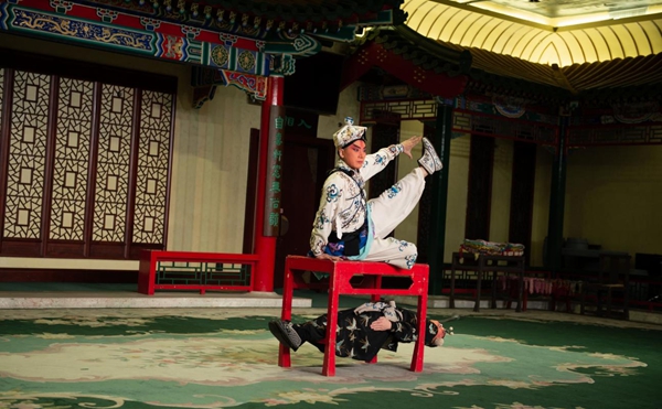 现场演出精彩纷呈,由青年演员王宇舟、王浩担纲主演的《三岔口》是一出经典的京剧传统剧目,要求演员技艺精湛、表演细腻。两位演员在灯火通明的舞台上,通过默契配合、丝丝入扣的表演技艺,使观众感觉到夜间摸黑搏斗的场景,淋漓尽致地展现了舞台戏曲艺术的虚拟性特征。