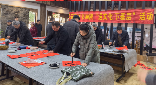 1月26日至29日,安徽省书画院组织书画家一行15人先后到亳州、含山、广德、郎溪、芜湖、合肥等地为工矿企业、乡村社区的群众义务写春联,送福字。聚焦春节文化的传承与弘扬、丰富群众精神文化生活,营造欢乐祥和的节日氛围。