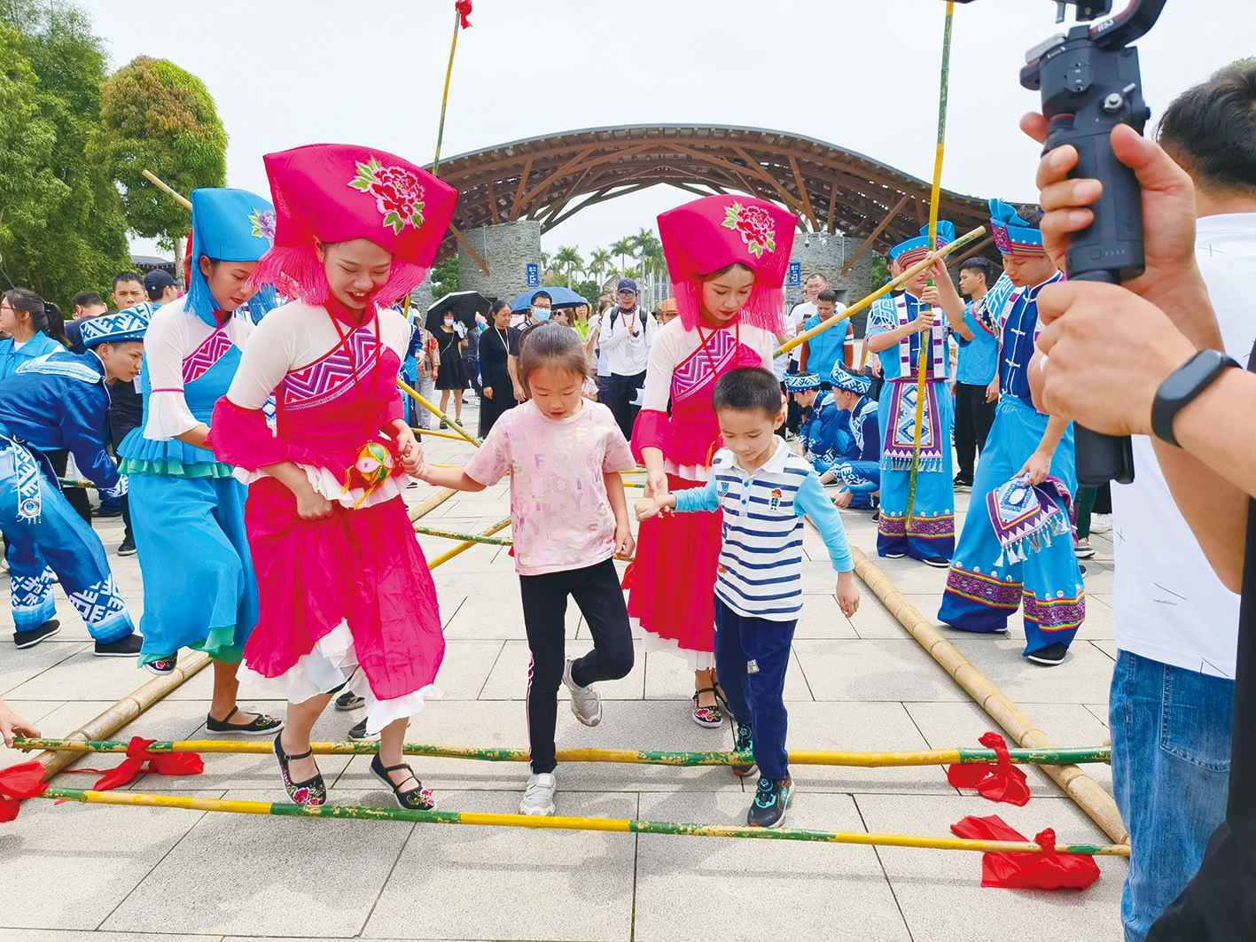 在南宁园博园,“忽闻春欲去”首届文化文创联合巡展的举办让这里成为“五一”文旅打卡点。4月30日,在南宁园博园东大门广场,一场八桂风情秀正在精彩上演。演员们身穿节日盛装,载歌载舞,热情邀请大家参与民族器乐、相声等表演与互动,体验传统明制婚礼。“凤冠霞帔、十里红妆,我欣赏了一场汉婚典礼,新人在举手投足间饱含华夏文明的优雅庄重。”来自广州的游客蔡欣欣说。
