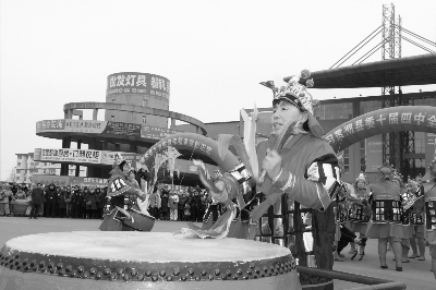 中国文化报实习记者杜亚欣 通讯员祁彦利报道:鼓声震天响,彩旗高飞扬。2月19日正月初十上午,河北省正定县金河家居基地广场上人潮涌动、锣鼓喧天,由该县县委、县政府主办,县文广新局、金河集团承办的正定县第九届鼓王争霸赛震撼开锣。据悉,今年的争霸赛异常激烈,参赛队除了本土9支代表队,还邀请了藁城市花钹鼓队、赵县背灯挎鼓队前来交流表演。