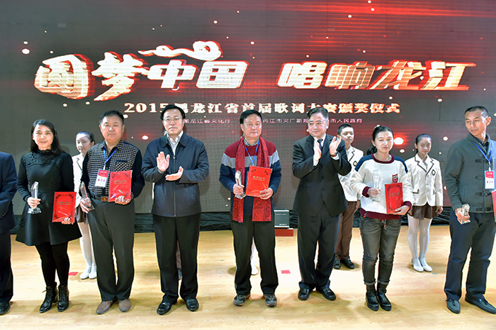 省文化厅厅长宋宏伟、牡丹江市市长刘忻、省演艺集团董事长戴立然、省群众艺术馆馆长徐明毅以及省文化厅、牡丹江市文广新局、穆棱市政府和全省各地市文广新局、群众艺术馆的有关同志出席了本次歌词大赛的颁奖盛典。穆棱市市长王志刚和省文化厅厅长宋宏伟在颁奖典礼上分别致辞,宋宏伟指出,“穆棱能够很重视、很精彩地承办全省首届歌词大赛,充分体现了穆棱市委市政府的文化自觉和文化担当,也向全省再一次展示了穆棱市的文化底蕴和多年文化建设的崭新成果”。