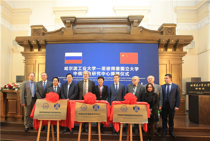 为深入贯彻黑龙江省省长陆昊指示精神,将俄罗斯顶尖高校的优质教育资源引入龙江,10月1日,哈工大与俄罗斯圣彼得堡国立大学合作建立的“中俄等离子体物理应用技术联合研究中心”、“中俄中东铁路文化遗产保护创新研究中心”和“中俄生态环境联合研究中心”揭牌仪式在哈工大博物馆礼堂举行。