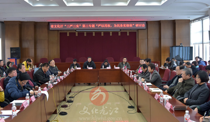 11月24日下午2点,黑龙江省直文化系统“严以用权,为民务实创业”专题研讨会在厅机关四楼会议室举行,研讨会由黑龙江省文化厅副厅长马军主持,厅领导班子成员、机关处室长、直属单位党政主要领导参加了本次研讨会。