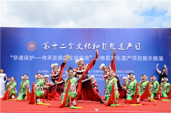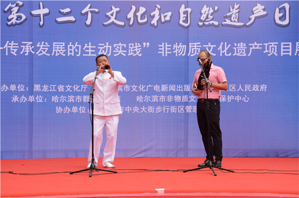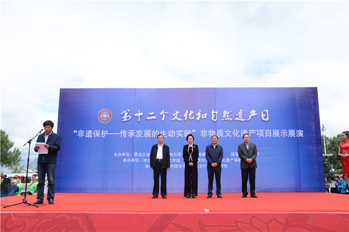 为庆祝首个文化和自然遗产日,深入贯彻落实《非物质文化遗产法》和《保护非物质文化遗产公约》,弘扬和传承我国优秀的传统文化,由黑龙江省文化厅、哈尔滨市文化广电新闻出版局、道里区人民政府主办,哈尔滨市非物质文化遗产保护中心承办,哈尔滨市中央大街步行街区管理处协办的主场城市活动——“非遗保护—传承发展的生动实践”非物质文化遗产项目展示展演活动于6月10日至11日,在防洪纪念塔万达广场隆重举行。黑龙江省文化厅厅长张丽娜、副厅长孟祥武以及哈尔滨市相关领导出席启动仪式。