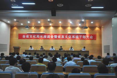 时值年中,全省文化系统进行工作盘点,鼓舞士气,克难攻坚。7月26日,河南省文化厅召开全省文化局长座谈会暨省直文化系统干部大会,学习贯彻7月22日河南省委书记卢展工的讲话精神,抓好工作落实,进行再部署,再安排。并学习传达7月20日到21日全国厅局长工作座谈会的精神。再次学习李长春同志今年2月在学习贯彻科学发展观上就文化工作的有关指示精神。河南省文化厅各级领导,各市文化局、文物局局长,文化厅、文物局机关干部,厅直单位中层以上干部等二百多人参加了会议。