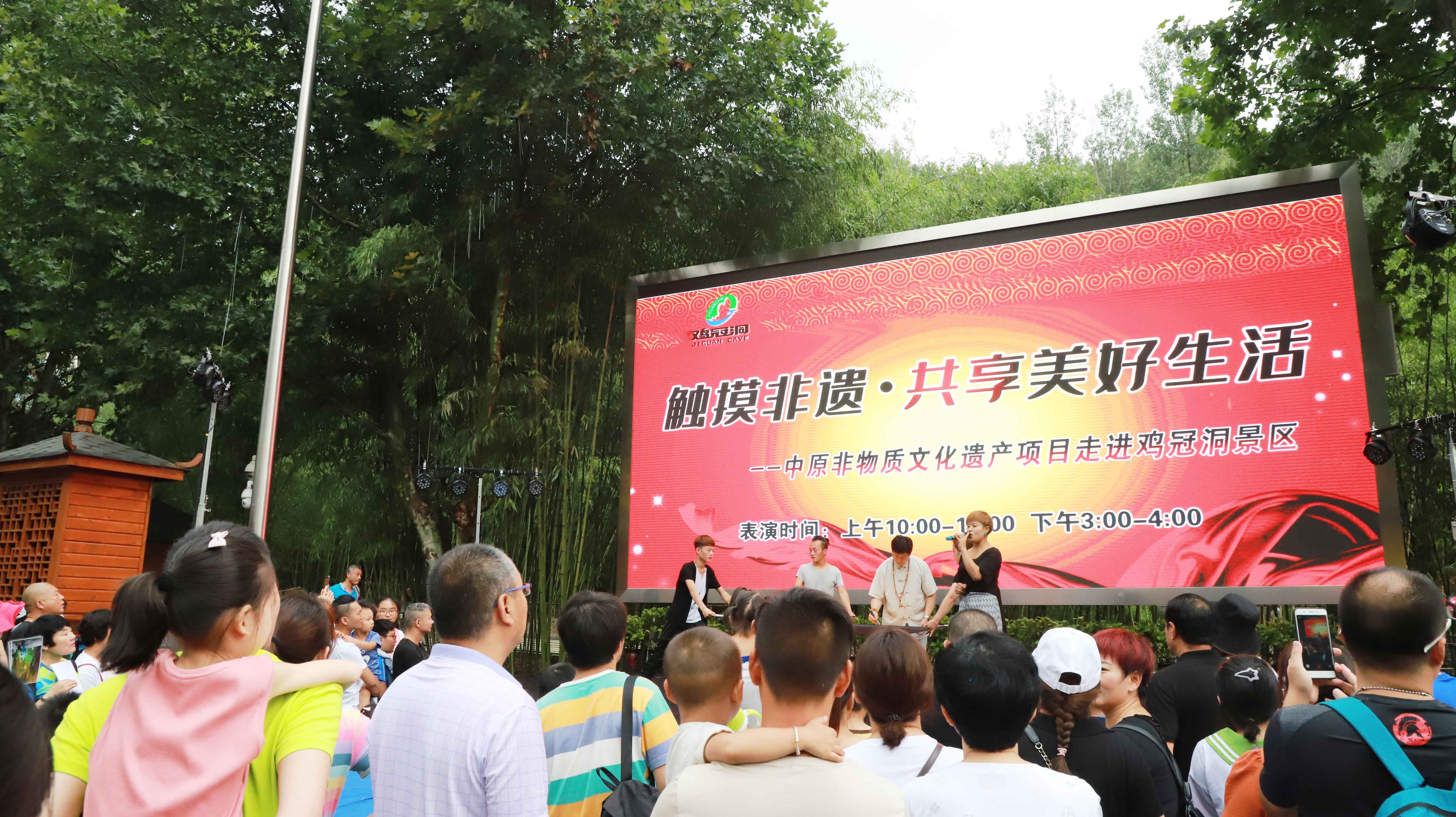 在为游客释放旅游红利的同时,栾川县还特别举办了“感悟栾川,触摸记忆”中原非遗文化展演进景区活动,中原非遗项目走进县内8家4A级以上景区,为游客们带来一场场文化视听盛宴。8月1日至15日,在鸡冠洞、老君山、重渡沟、龙峪湾、养子沟、天河大峡谷、抱犊寨和伏牛山滑雪度假乐园,每天上演河洛大鼓、河南坠子、特技、笛箫、古筝、剪纸、陶艺等非遗节目,让游客身处美景之中近距离欣赏了解中原非物质文化遗产的魅力,极大丰富了游客的旅行体验。