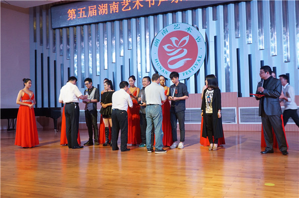 湖南省文化厅厅长李晖为一等奖获得者颁奖并合影