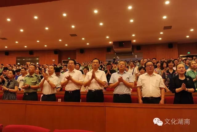 6月30日晚8时,湖南省庆祝中国共产党成立95周年“红旗颂”大型群众合唱晚会在湖南省人民会堂隆重举行。湖南省委常委、省委秘书长许又声,省委常委、宣传部部长张文雄,省人大常委会副主任陈君文,省政协副主席、省文联主席欧阳斌,省军区参谋长郭辑山,省人大常委会原副主任、省文化艺术基金会会长肖雅瑜,省委宣传部巡视员魏委,省文化厅党组书记、厅长李晖,省文化厅原厅长、省人大教科文卫委原副主任委员刘健民,省文化厅党组副书记、副厅长禹新荣 ,党组成员、副厅长肖凌之,党组成员、纪检组长廖星,党组成员、副厅长张帆,厅副巡视员何强,湖南出版投资控股集团党委委员、副总经理、红网董事长舒斌等领导现场观看演出。