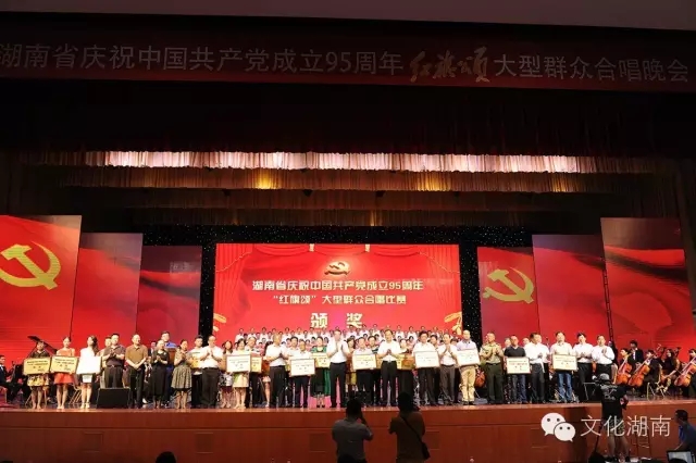 为隆重庆祝中国共产党成立95周年,讴歌中国共产党成立以来的光辉业绩和伟大成就,今年3月,省文化厅在全省启动“红旗颂”大型群众合唱比赛活动,通过县市区初赛、市州复赛和全省决赛,选拔出10个具有代表性和示范性的节目参加合唱晚会。整个活动历时4个月。自开赛以来,全省各地积极响应,踊跃参与,一支支歌颂伟大祖国繁荣昌盛的主旋律在三湘大地唱响,掀起了唱党恩、颂党情的热潮。包括机关事业单位、企业、学校及社会民间艺术团体在内的近1400余支群众文艺团队踊跃参与,直接参与活动的人数达14万余人,观众近百万人,各级文艺骨干下基层开展指导培训1200批次,辅导学员8万余人。
