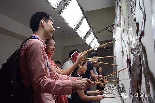 在省木偶皮影艺术保护传承中心,了解了木偶的制作过程和表演技巧,嘉宾们对这种传统技艺赞不绝口。在省文化馆进行了书画交流笔会,现场众多书法爱好者挥毫泼墨,或行或楷,或隶或草,风格多样,均表现出较高的书法艺术水平。在湖南影像创客空间,参观了创新工厂、拍摄基地、录音棚、电影院,充分感受到湖湘文化在现代社会焕发出的勃勃生机。