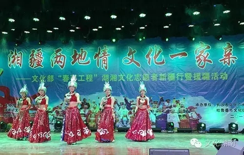 活动期间,首批国家公共文化服务体系示范区、国家公共文化服务标准化试点城市——湖南长沙的36名文化志愿者结合湖南省对口援助新疆活动,以“大讲堂”、“大舞台”、“大展台”等形式,先后去到吐鲁番、喀什和乌鲁木齐等地,和新疆本地文艺工作者一起,用嘹亮的歌声、曼妙的舞姿和精美的展览架起一座湘疆两地一家亲的友谊桥梁。