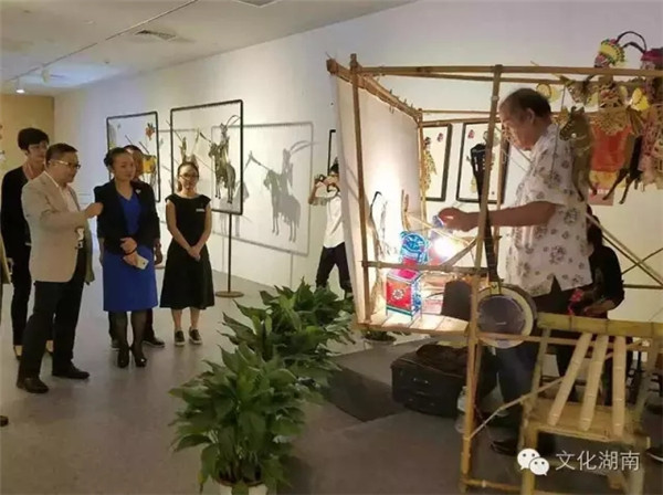 湖南省文化厅党组书记、厅长李晖参观皮影展厅