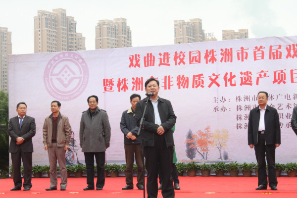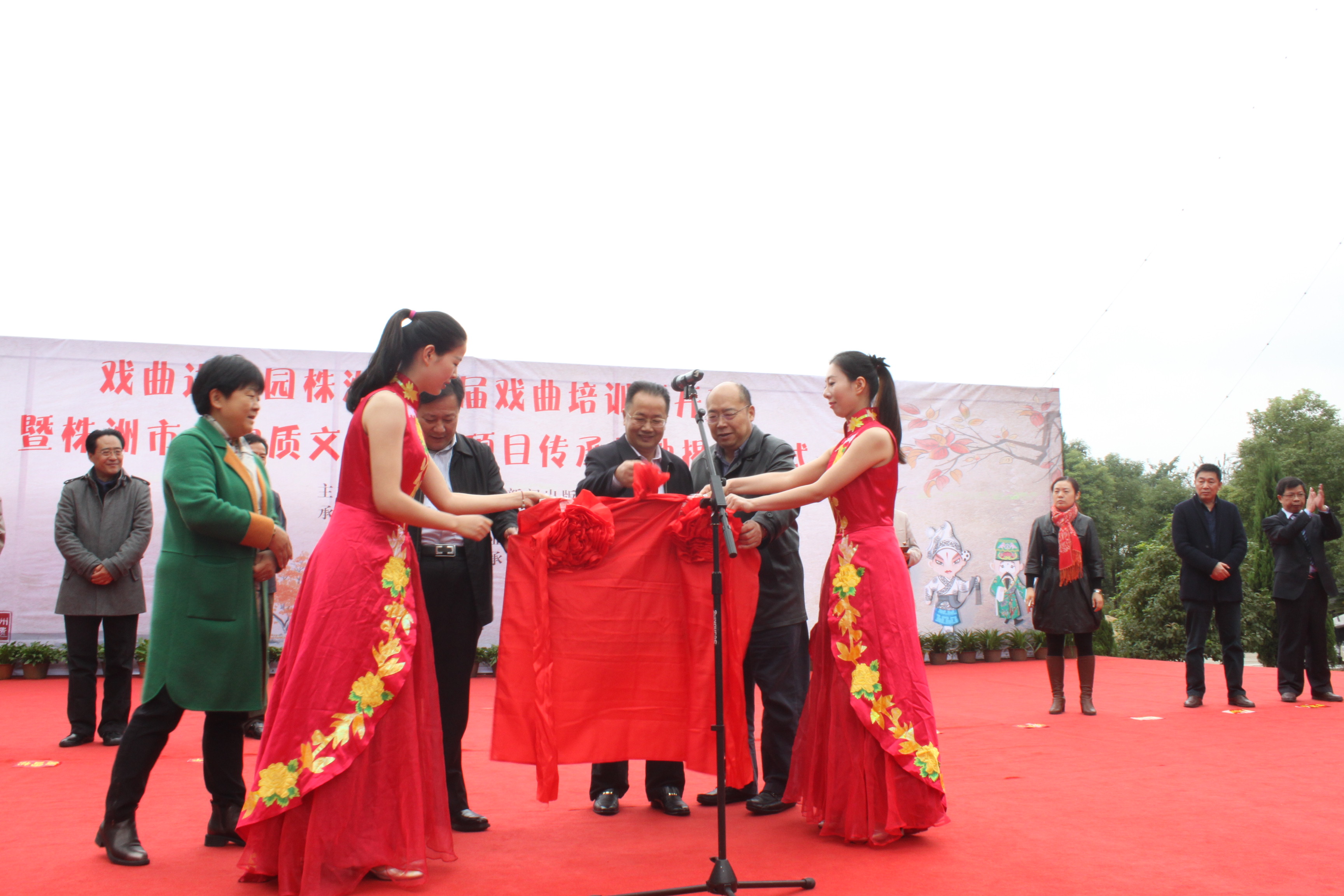 11月2日上午,湖南省株洲市“戏曲进校园”首届戏曲培训班开班暨株洲市首批非物质文化遗产项目传承基地揭牌仪式在市中等职业学校举行。湖南省文化厅副厅长鄢福初,株洲市委常委、市委宣传部部长聂方红,株洲市人大常委会副主任鲁立彬,株洲市政协副主席张国浩,株洲市政府副秘书长董小平,省文化厅艺术处、非遗处,株洲市文体广新局、市教育局、市戏剧传承中心、市中等职业学校负责人出席了活动。