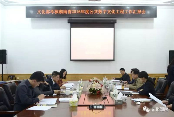 4月21日上午,文化部考核湖南省2016年度公共数字文化工程工作汇报会在湖南图书馆召开,禹新荣主持工作汇报会,并就湖南省的工作情况作了专题汇报。湖南图书馆、省文化馆主要负责人作了补充汇报。考核组查阅了有关文件资料,实地考察了湖南图书馆服务设施。