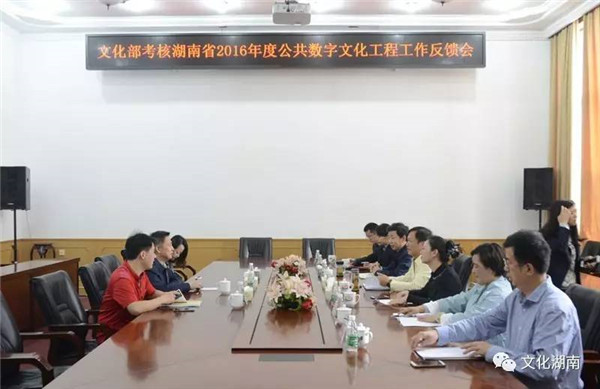 4月20日至23日,文化部公共数字文化工程考核组对湖南省2016年度公共数字文化工程建设情况进行考核。湖南省文化厅党组书记、厅长禹新荣主持工作汇报会、意见反馈会。湖南省文化厅公共文化处、湖南图书馆、省文化馆、株洲市文体广新局、醴陵市人民政府相关负责人陪同检查或参加工作汇报会、意见反馈会。