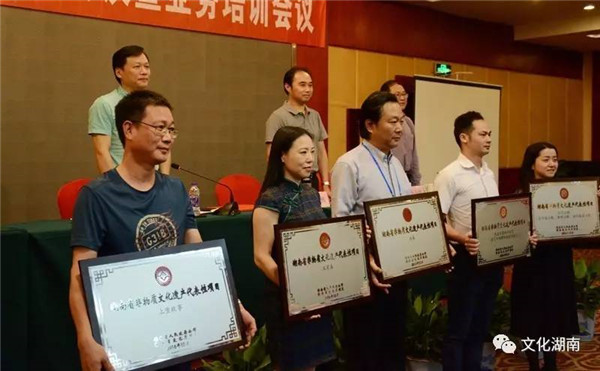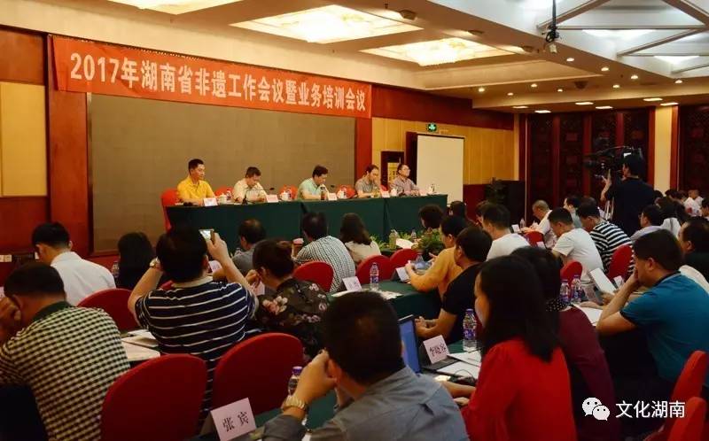 5月25日至26日,2017年湖南省非遗工作会议暨业务培训会议在长沙召开。会议传达了全省文化工作会议精神,总结了2016年的工作,部署了2017年的工作任务并进行了业务培训。会上,颁发了第四批省级非物质文化遗产代表性名录和拓展名录牌匾;岳阳、湘西、邵阳、常德、张家界等市州代表做了典型发言。湖南省文化厅党组书记、厅长禹新荣出席会议并讲话,党组成员、副厅长张帆出席会议并作工作报告。