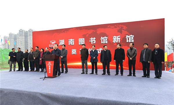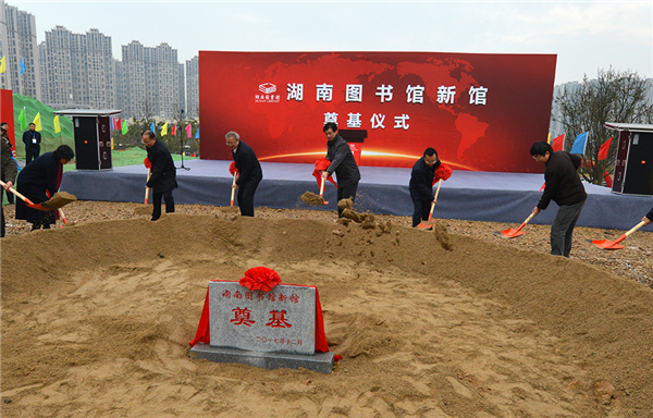 2017年12月28日上午,湖南图书馆新馆奠基仪式举行。湖南省委常委、省委宣传部部长蔡振红,湖南省政协副主席欧阳斌等领导出席奠基仪式;湖南省副省长向力力致辞并宣布奠基开工;湖南省文化厅党组书记、厅长禹新荣主持奠基仪式。湖南省政府办公厅、省委宣传部、长沙市政府等相关部门负责人参加奠基仪式。