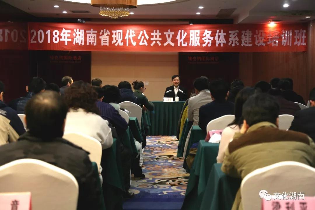 1月25日至26日,湖南举办全省现代公共文化服务体系建设培训班。本次培训班旨在全面贯彻落实党的十九大精神,深入贯彻落实湖南省委十一届四次全会、全国文化厅局长会议和全省宣传部长会议、文化局长会议精神,总结2017年公共文化工作,部署2018年重点工作。湖南省文化厅党组书记、厅长禹新荣,副厅长鄢福初分别为学员授课。