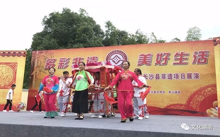 6月8日,以“多彩非遗 美好生活”为主题的2018年“文化和自然遗产日”宣传活动暨长沙县非遗项目展演在长沙县青山铺镇举行。在展览展示区,近20块展板图文并茂地展示了长沙县多项非物质文化遗产保护成果,通过剪纸、茶艺等非遗项目的现场制作展示,传达了民间民俗文化的韵味和特色。舞台上,非物质文化遗产项目花鼓戏、长沙弹词、长沙快板、锣鼓亭子等节目形式多样、特色鲜明,吸引了众多群众驻足观看。