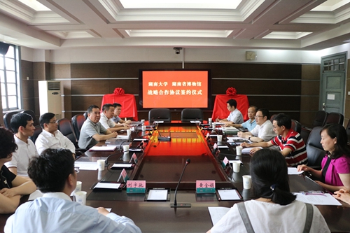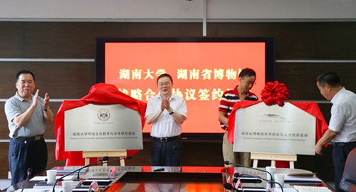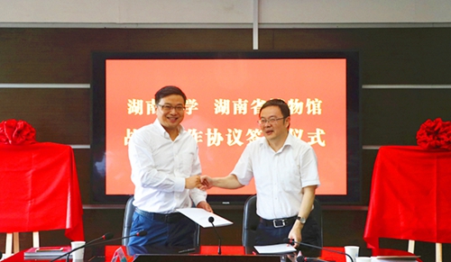 7月3日,湖南省博物馆与湖南大学馆校战略合作协议签约仪式在湖南大学举行。湖南省文化厅副厅长肖凌之、湖南省文物局副局长江文辉、湖南省博物馆馆长段晓明、湖南大学副校长谢赤等相关部门负责人出席签约仪式。