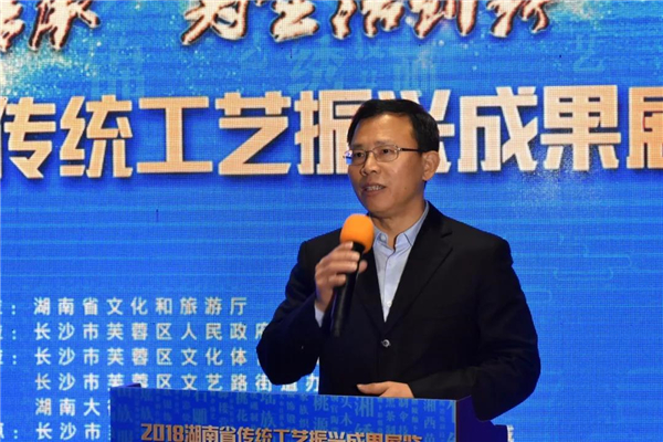 薪火相传,匠心独运。11月16日,湖南大麓珍宝古玩城热闹非凡,2018年湖南省传统工艺振兴成果展在这里开幕,22个非遗项目集中亮相,展示了近年来湖南省传统工艺振兴成果。湖南省文化和旅游厅厅长陈献春宣布展览开幕,厅党组成员、副厅长张帆主持开幕式。湖南省财政厅、省工业和信息化厅、长沙市芙蓉区政府等相关负责人参加开幕式。