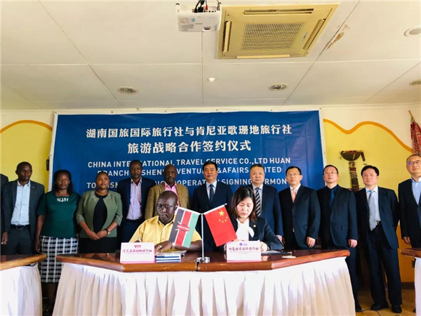 中肯嘉宾共同见证中国国旅湖南分公司与肯尼亚歌珊地旅行社签署旅游合作协议