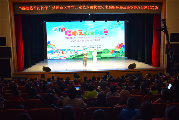 1月23日,由湖南省文化馆、湖南省文化志愿服务群文支队主办的“播撒艺术的种子”贫困山区留守儿童艺术帮扶文化志愿服务展演展览暨总结表彰活动在湖南省文化馆举行,文化志愿者和贫困山区的孩子们欢聚一堂,共同见证艺术的种子开花结果。