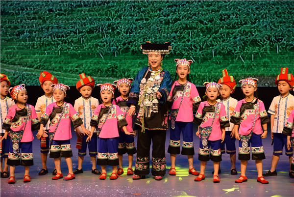 展演现场,由湖南省11个贫困山区留守儿童艺术培训点的孩子们带来的节目轮番上演。少儿舞蹈《鼓舞瑶都》、苗歌演唱《水车童谣》、原创相声《种子》、小合唱《谢谢我的妈妈》、昆曲曲牌《皂罗袍》……舞台上,孩子们和着动听的节拍,边唱边跳,稚嫩的脸上流露出纯真的笑容。
