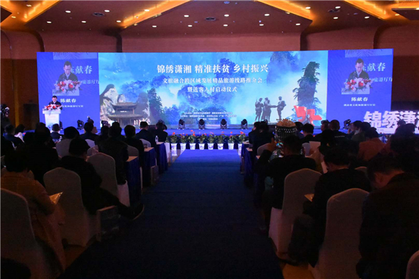 4月12日,“锦绣潇湘、精准扶贫、乡村振兴”文旅融合跨区域发展精品旅游线路推介会暨送客入村启动仪式在长沙举行。湖南省人大教科文卫委员会副主任委员陈佳新、省政协副秘书长江涌出席推介会,湖南省文化和旅游厅厅长陈献春出席并致辞,湖南省发改委副巡视员何唤鸣,省文化和旅游厅党组成员、副厅长高扬先,省文化和旅游厅党组成员、副厅长肖凌之等出席。