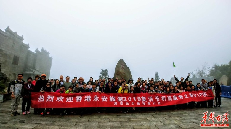 湖南光大国旅接待香港祈福康寿旅游团在南岳衡山。