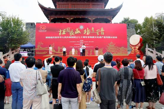 9月5日,由中共湖南省委宣传部、湖南省文化和旅游厅、中共岳阳市委、岳阳市人民政府主办的“祖国长盛 非遗常青”湖南省庆祝中华人民共和国成立七十周年非物质文化遗产系列展示活动在岳阳巴陵广场开幕,为广大市民奉上一场非遗盛宴。中共湖南省委宣传部巡视员龚爱林出席开幕式,湖南省文化和旅游厅党组成员、副厅长、省文物局局长陈远平致辞并宣布活动开幕。