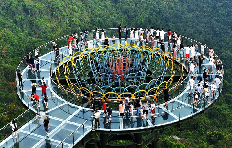 5月2日,游客在三亚亚龙湾热带天堂森林旅游区游览。