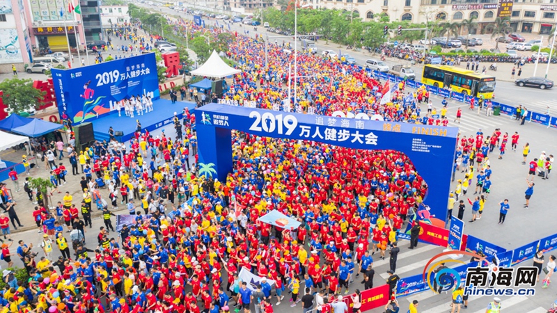 空中俯瞰2019追梦海南万人健步大会现场。