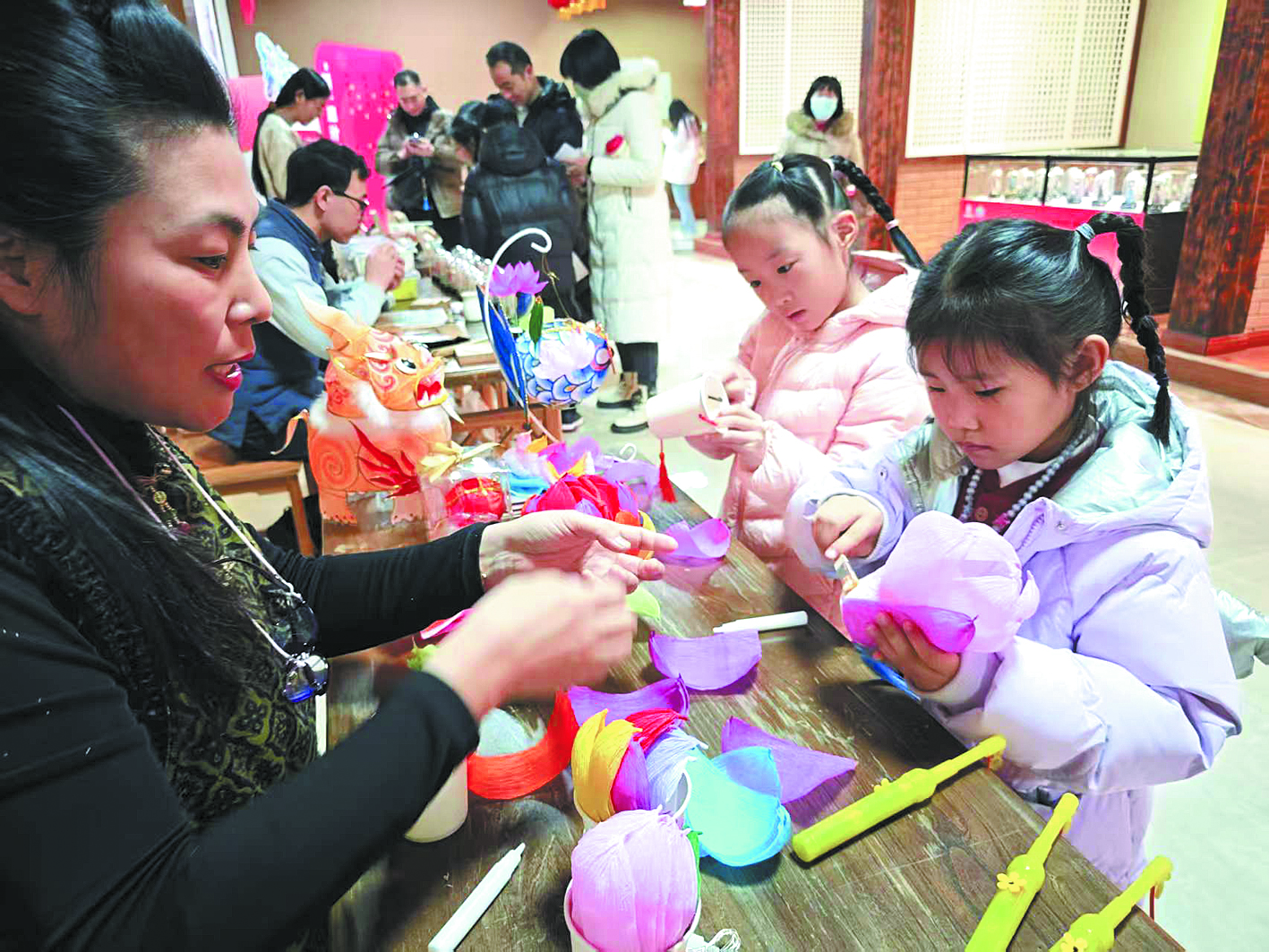 观众在山东省文化馆参与非遗体验活动