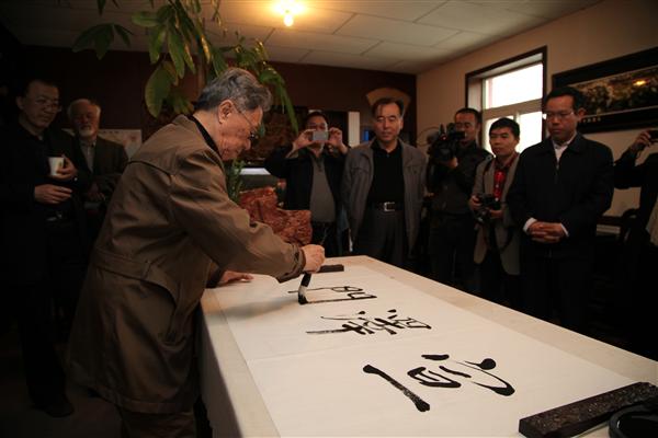 在哈密考察访问期间,王蒙一口流利的维吾尔语引得众人连连赞叹,在回王陵,他用维吾尔语和导游交流历史知识,在十二木卡姆传承中心,他不仅用维吾尔语和木卡姆艺人们亲切交谈,还走上舞台与木卡姆艺人们一同舞蹈。在巴里坤松峰书院,当王蒙得知这里将成为弘扬传统文化的公共平台,欣然为松峰书院题字留念。王蒙说,在哈密的时间虽然很短暂,但是哈密文化的独特令他印象深刻。