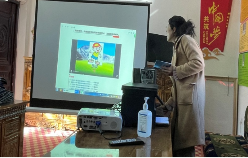 在新的学习内容开讲前,驻村工作队员扎西旺姆同志带领学员们复习了上一次课的学习内容,并通过为学员展示幻灯片的形式讲授了《日喀则市村(居)干部学习国家通用语言培训教材》中“单位部门”这一课程内容。