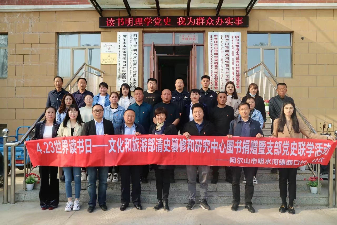 清史中心认真做好文化和旅游部党史学习教育“我为群众办实事”实践工作,积极参加阿尔山市“倡导全民阅读·共建书香阿尔山”世界读书日主题活动,向阿尔山市委党校捐赠党史类书籍450册;积极落实文化和旅游部定点帮扶工作要求,向阿尔山市图书馆捐赠清史工程出版图书300册,向阿尔山市明水河镇西口村捐赠历史文化相关书籍524册。此次活动,清史中心向阿尔山市捐赠党史类图书、清史工程出版图书和文化、历史类书籍共计1274册,助力阿尔山建设书香城市。