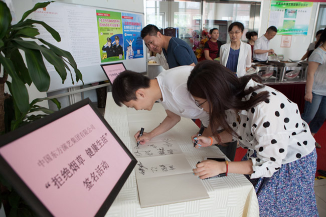 为落实中央国家机关爱国卫生运动委员会及文化部的要求,宣传健康生活方式,引导广大干部职工认真执行《北京市控制吸烟条例》,5月28日-6月1日,中国东方演艺集团组织开展以“拒绝烟草 健康生活”为主题的控烟宣传活动,通过现场签名、张贴海报、增设警示标识等多种方式宣传控烟工作。