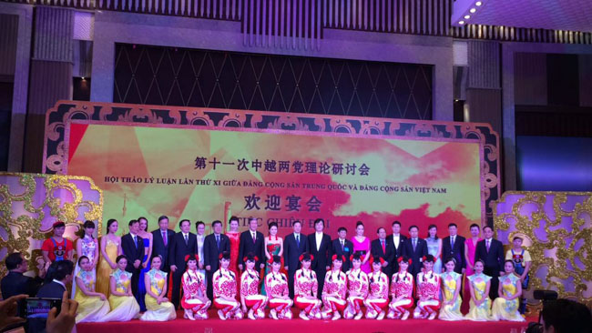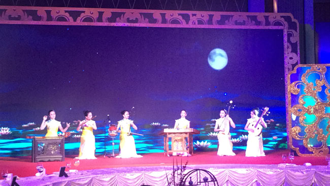 6月17日,以“社会发展和治理创新”为主题的第十一次中越两党理论研讨会在上海开幕。 6月16日的欢迎宴会上,中国东方演艺集团为出席研讨会的领导和与会人员奉献了独弦琴与民乐演奏《过桥风吹》、越南歌曲《青竹》、二重唱《越南中国》等具有两国文化特色的精彩节目,歌颂了中越两国人民心手相连、热爱和平的友好情谊。曾经在中越歌曲演唱大赛上有出色表现的著名女高音歌唱家吴静的倾情演绎,更是让越南代表们深深陶醉。 (来源:中国东方演艺集团)