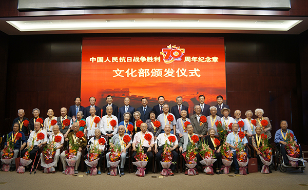 9月2日上午10时,“中国人民抗日战争胜利70周年纪念章文化部颁发仪式”在文化部309会议室召开,集团离休干部孟于、王犁、李铮3名抗战老同志出席颁奖仪式。