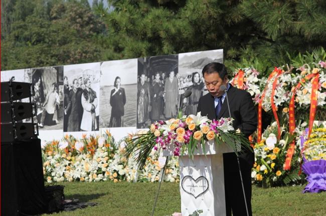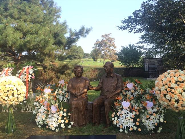 9月27日上午,在《北风吹》与《志愿军战歌》变奏曲的优美歌声中,在庄严、神圣、温馨的气氛中,近百名来宾在河北易县华龙皇家陵园参加了周巍峙、王昆同志铜像落成暨骨灰安放仪式。