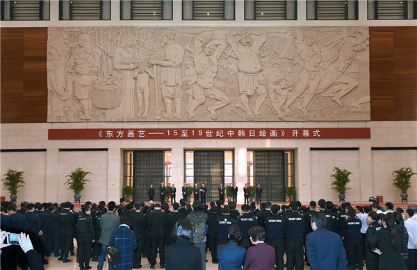 11月4日,由中国国家博物馆、韩国国立中央博物馆和日本东京国立博物馆三馆合作举办的“东方画艺——15至19世纪中韩日绘画”展览在中国国家博物馆西大厅举行开幕仪式。