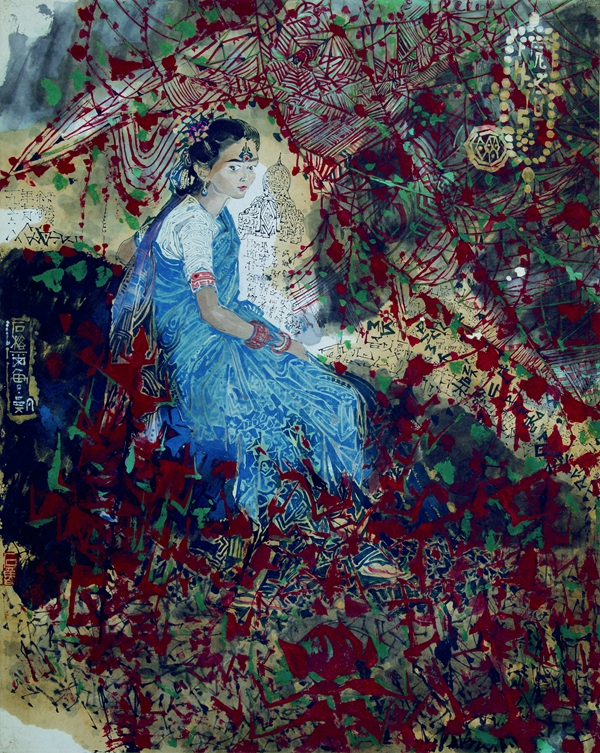 石鲁作品《林中少女》