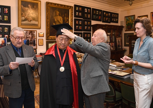 俄罗斯艺术科学院主席祖拉布·采利捷里为国家博物馆馆长吕章申授予荣誉院士证书