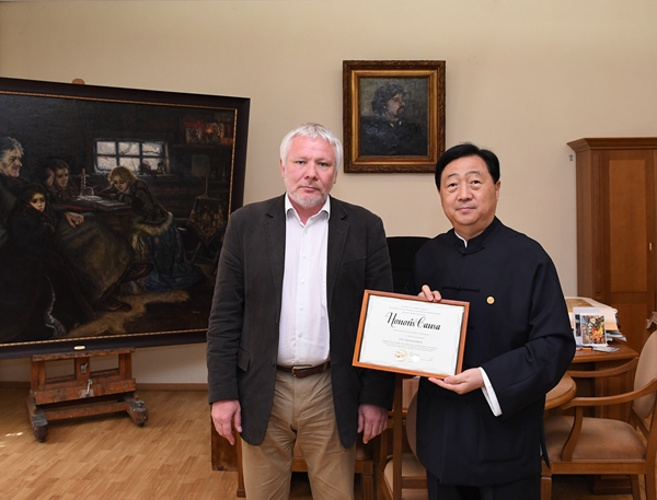 俄罗斯苏里科夫美术学院向国家博物馆馆长吕章申授予苏里科夫美术学院名誉教授称号并颁发证书