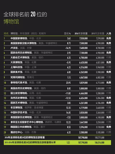 《2016 TEA/AECOM主题公园指数和博物馆指数报告》全球排名前20位的博物馆