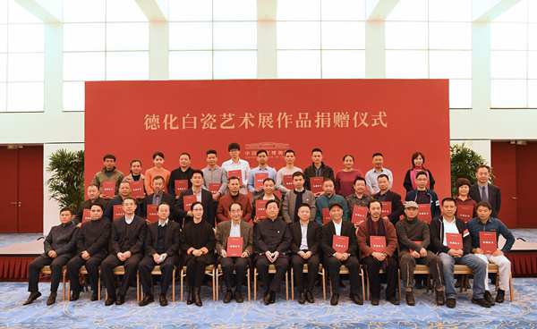 11月6日,德化白瓷作品捐赠收藏仪式在国家博物馆白玉厅举行。国家博物馆馆长吕章申,财务总监冯靖英,副馆长李六三、陈成军、白云涛,德化县人民政府县长刘德旺及德化的陶瓷艺术大师们出席捐赠收藏仪式。吕章申向各位捐赠人依次颁发了捐赠收藏证书。